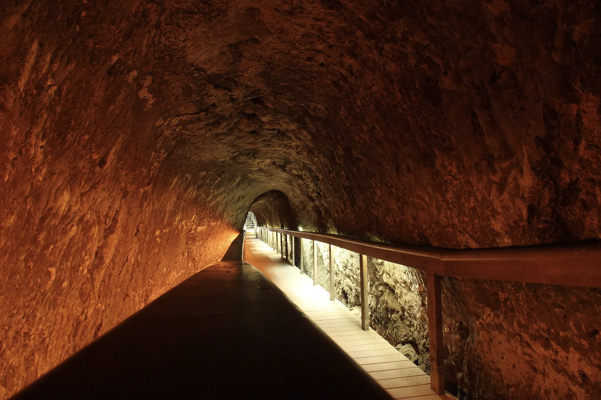 [므깃도의 수로] 기원전 9세기의 아합 시대에 건설된 므깃도의 수로는 전시에 성밖에 위치한 샘의 물을 성안에서 접근하기 위해서 만들어진 인공 터널이다.