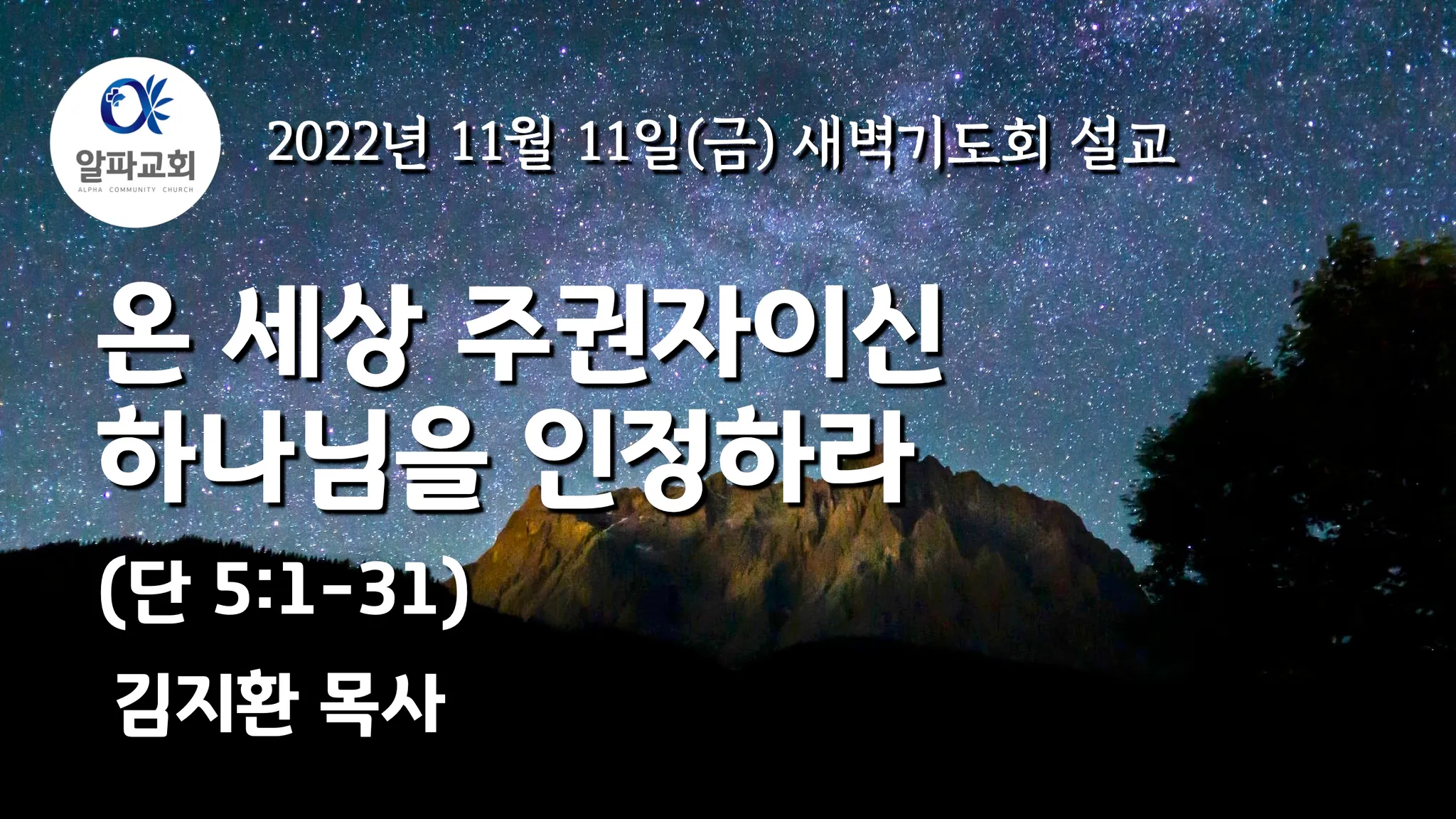 할렐루야 오늘 이 새벽에 알파교회 새벽기도회에 참여하시고 또한 온라인으로 말씀을 들으시는 여러분 모두에게 우리 주님의 평강이 가득 넘치시길 주님의 이름으로 축복합니다.