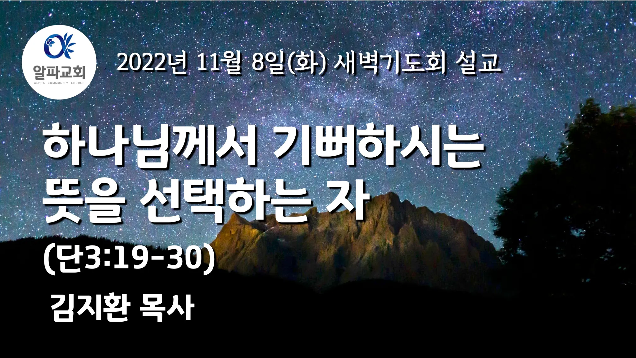 할렐루야 오늘 이 새벽에 알파교회 새벽기도회에 참여하시고 또한 온라인으로 말씀을 들으시는 여러분 모두에게 우리 주님의 평강이 가득 넘치시길 주님의 이름으로 축복합니다.