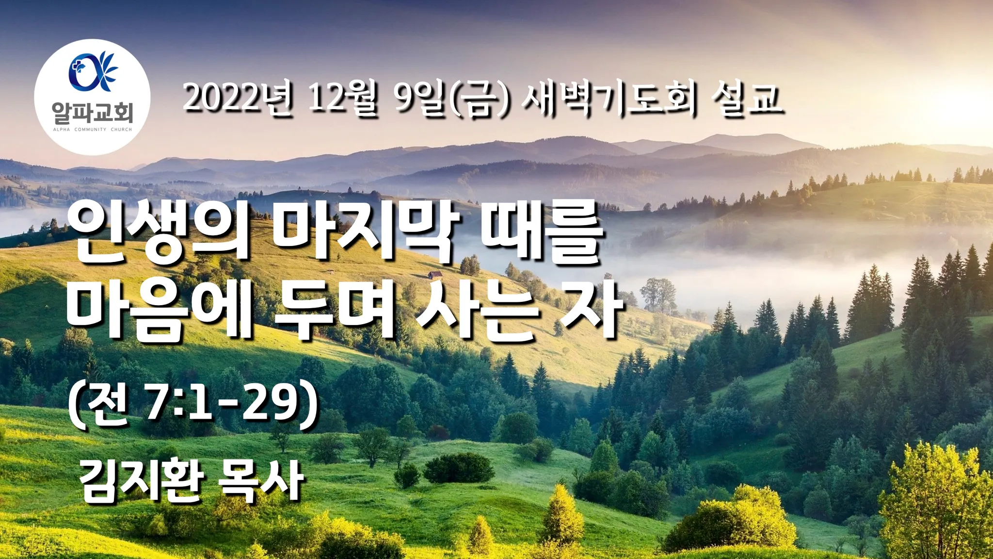 그렇습니다. 모든 사람에게는 끝이 있죠. 따라서 산 자는 이것을 그의 마음에 반드시 두어야 하는 것입니다. 우리 모두는 태어난 순간이 있었듯이 죽는 순간도 분명히 있을 것입니다. 그러므로 죽음이 언제든지 찾아올 수 있다는 점을 염두에 두고 살아가야 하는 것이죠. 죽음이 언제든지 찾아올 수 있다는 것을 마음에 두게 되면, 그렇지 않을 때와 삶의 태도가 완전히 달라지게 됩니다. 죽음을 생각하지 않을 때에는 이 세상에 집중하는 삶을 살게 되지만, 죽음을 생각할 때에는 이 세상 이후를 생각하는 삶을 살게 되죠. 죽음을 생각하지 않을 때에는 영원하지 않는 것, 즉 이 세상의 것을 추구하는 삶을 살게 되지만, 죽음을 생각할 때에는 영원한 것, 즉 하나님의 나라를 추구하는 삶을 살게 되는 것입니다. 그렇기 때문에 죽음을 생각하는 것은 너무 중요한 것이죠. 그러므로 전도자는 8절 말씀에서 “일의 끝이 시작보다 낫고”라고 말씀하고 있는데, “일의 끝”의 의미 또한 죽음, 마지막을 의미하는 것이죠. 우리 인생의 마지막은 결국 하나님 앞에 서게 될 것인데, 일의 끝을 잘 마무리 하는 삶이 너무 중요한 것입니다. 따라서 오늘 주신 말씀과 같이 나의 삶도 언젠가는 마무리 될 날이 있다는 것을 늘 기억하시고, 하나님 앞에서 늘 겸손하게 영원하지 못한 이 세상의 것들보다는 하나님 나라와 영원한 것을 늘 추구하시는 여러분들 되시길 주님의 이름으로 축복합니다.