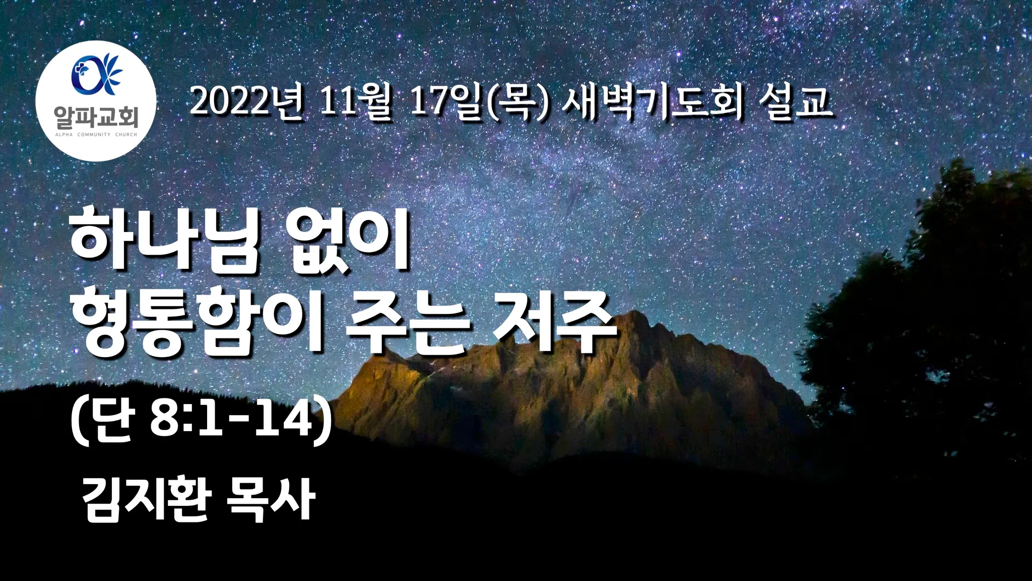 할렐루야 오늘 이 새벽에 알파교회 새벽기도회에 참여하시고 또한 온라인으로 말씀을 들으시는 여러분 모두에게 우리 주님의 평강이 가득 넘치시길 주님의 이름으로 축복합니다.