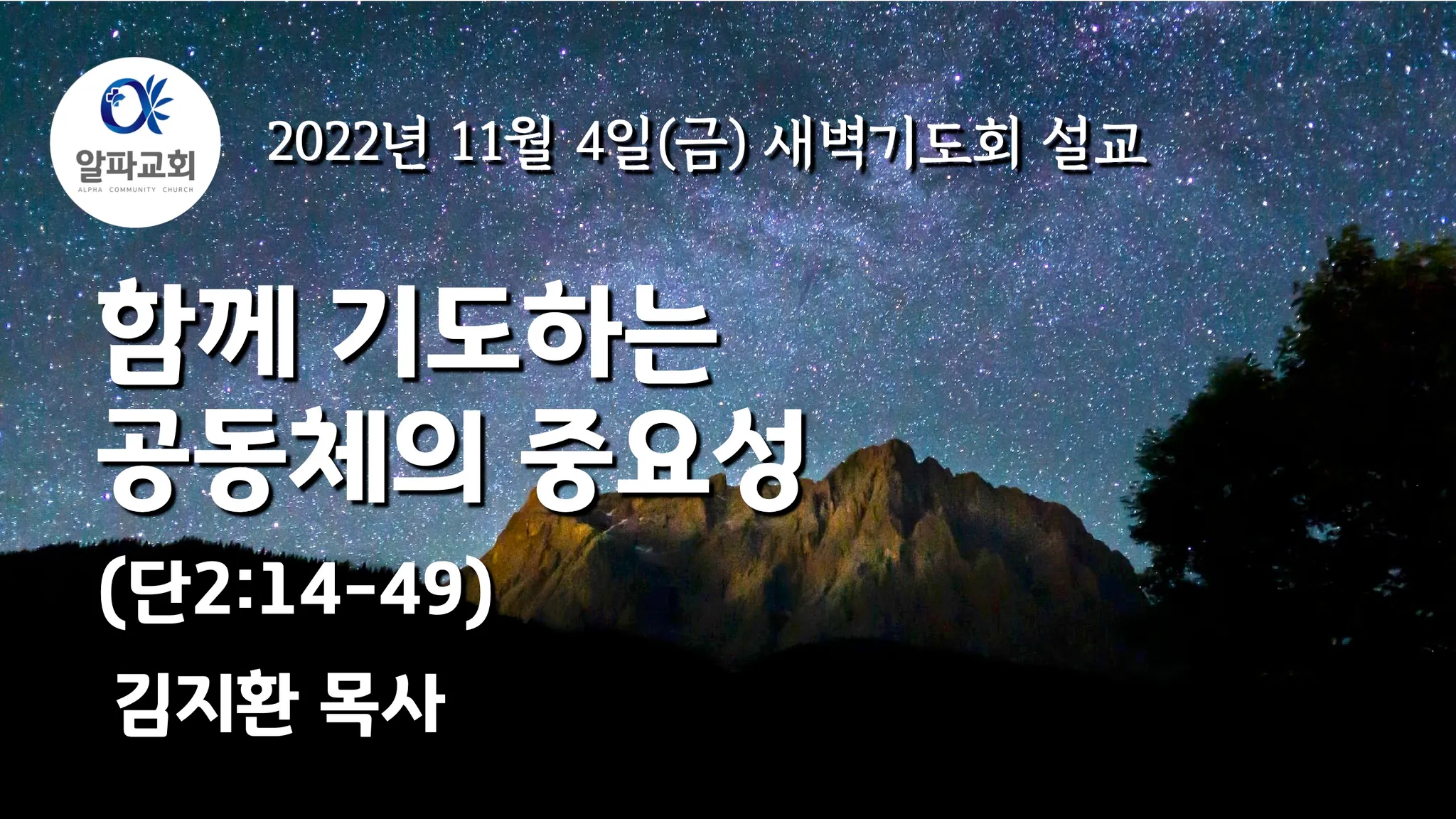 할렐루야 오늘 이 새벽에 알파교회 새벽기도회에 참여하시고 또한 온라인으로 말씀을 들으시는 여러분 모두에게 우리 주님의 평강이 가득 넘치시길 주님의 이름으로 축복합니다.