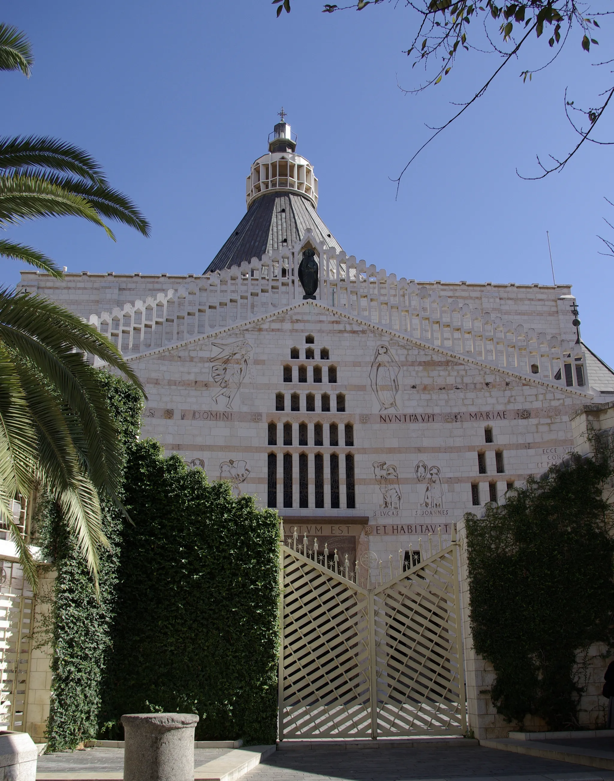 나사렛에 가면 도시 중심에 가장 눈에 띄는 건물 하나를 만나게 되는데, 로마 가톨릭 소유의 수태고지기념교회입니다. 이 교회는 중동에서 가장 큰 예배당입니다. 오랫동안(1954-1965) 고고학적 발굴을 통해 사람들이 살았던 흔적과 비잔틴시대(427년경)의 기념교회 유적, 그리고 그 위에 세워졌던 십자군의 기념교회 흔적이 발굴되었지만 이곳이 누가복음 1장에 기록된 예수님 수태고지 사건의 현장이라는 단서는 발견된 사실이 없습니다. 수태고지 교회에 가려면 아랍 상점이 다닥다닥 붙은 재래시장을 가로질러 올라가야 한다. 상인들은 좌판에 물건을 펼쳐 놓고 호객행위를 합니다. 양고기 타는 냄새로 가득한 골목길에서 아낙네들은 싼 물건을 찾느라 이곳저곳 뒤척입니다. 복잡한 시장길을 지나 오른편 언덕길로 올라가면, 두툼한 청동 대문이 행로에 지친 순례객을 맞이합니다.