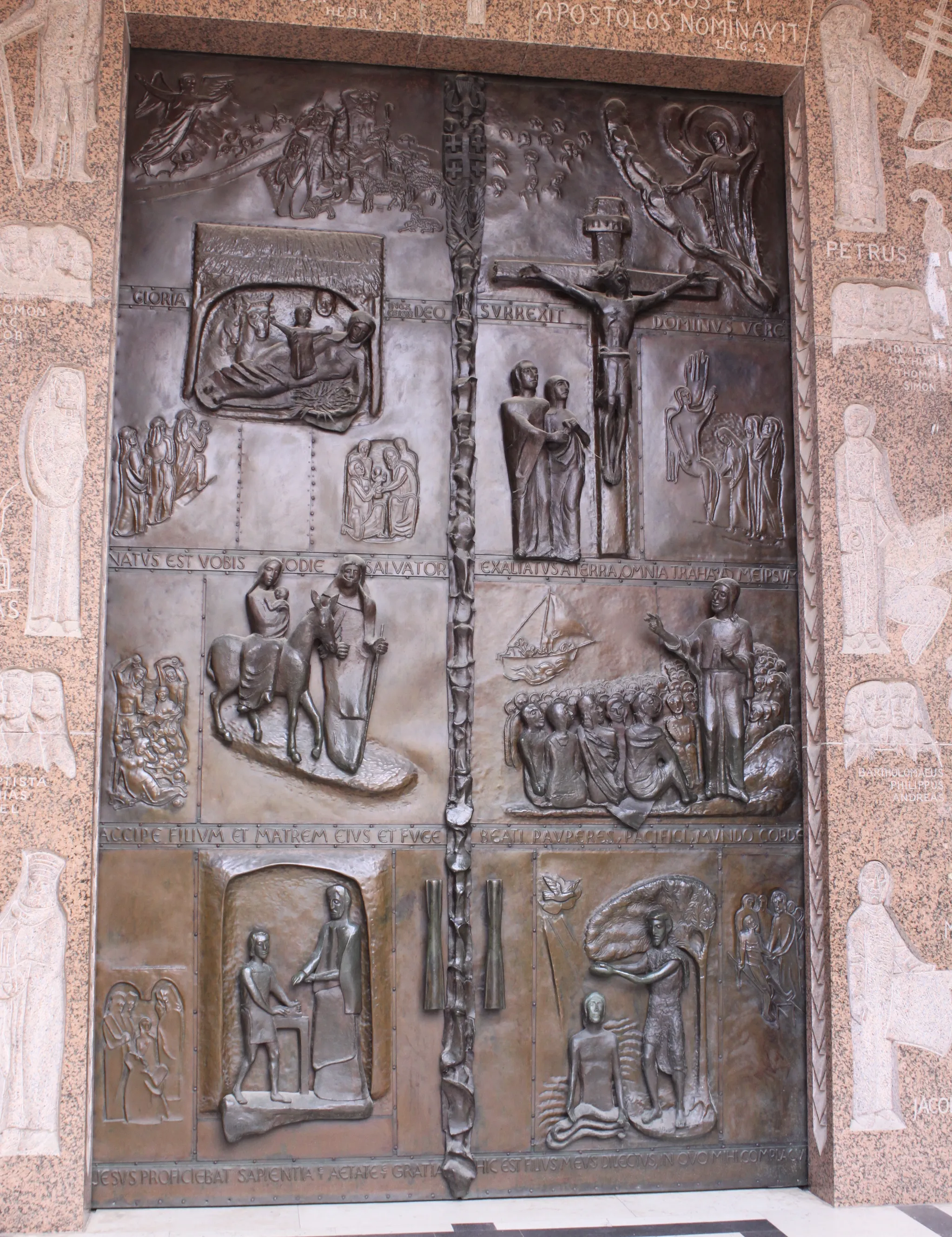 [교회 건물로 들어가는 문에 조각되어있는 예수님의 생애]