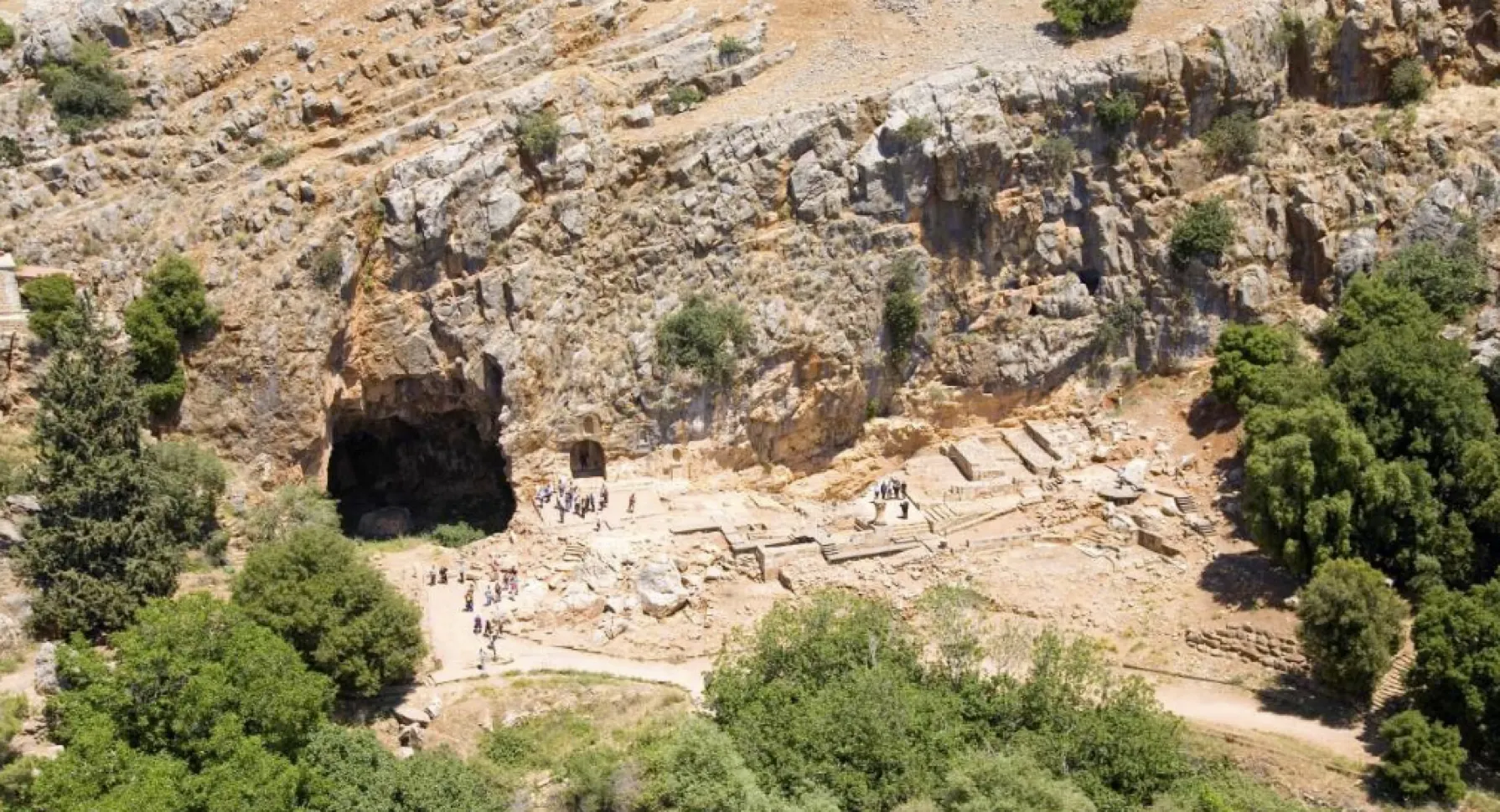[가이사랴 빌립보 판신의 신전터 유적지 전경] 좌측으로 보이는 동굴이 판 신을 위한 동굴이며, 동굴 앞에는 판 신을 위한 신전이 서 있었고, 바로 우측 사람들이 많이 모여 있는 곳은 판 신을 위한 제단 터입니다.
