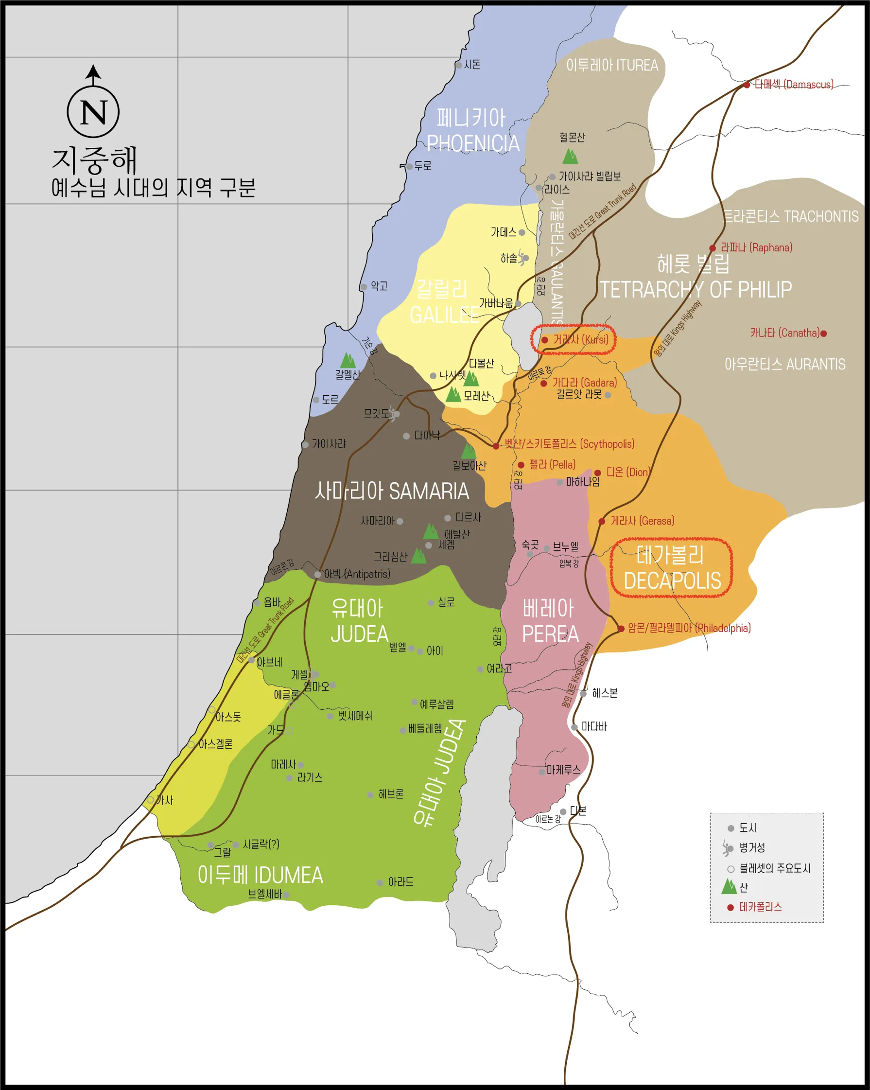 [데가볼리 지역에 속해 있는 거라사] 예수님 당시 데가볼리는 이방인들이 모여 살던 지역이었습니다.
