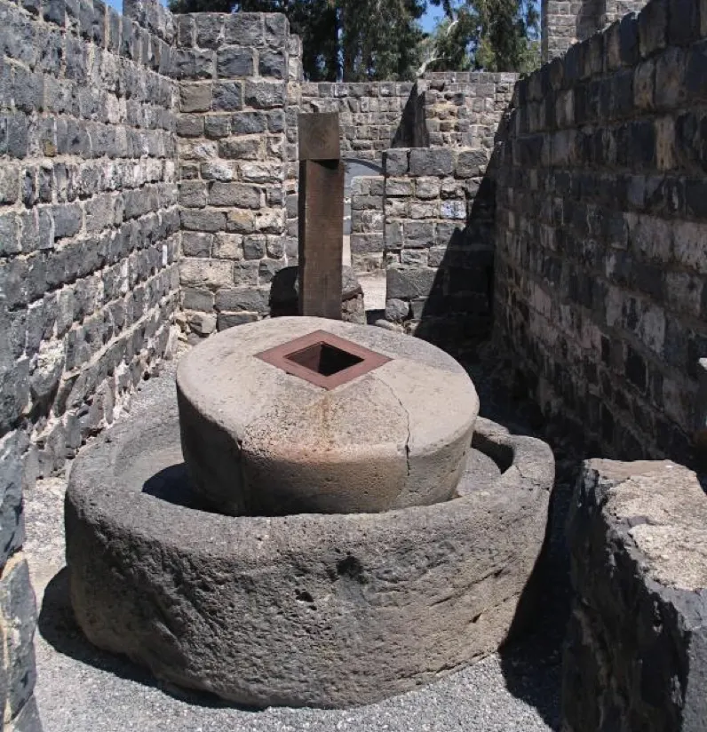 이 교회 또한 화산지대에 위치해 있기 때문에 검정색 현무암으로 세워져 있습니다. 예배당에는 십자가 문양을 새긴 기둥들이 있고, 모자이크로 장식된 교회 바닥은 포도, 무화과, 석류, 어류, 새 등으로 장식되어 있는데, 이는 이 건물이 비잔틴시대에 세워졌다는 사실을 증명해 줍니다. 올리브압착기도 보이는데, 이는 순례객들에게 성유포를 주기 위해서입니다. 교회 건물 내부에는 사제와 평신도의 영역을 구분했던 뚜렷한 흔적을 볼 수 있고 침례(물속에 완전히 몸을 담그는 의식)에서 세례로 교회 의식이 변화되는 중간기의 세침례 탕의 모습도 볼 수 있습니다.