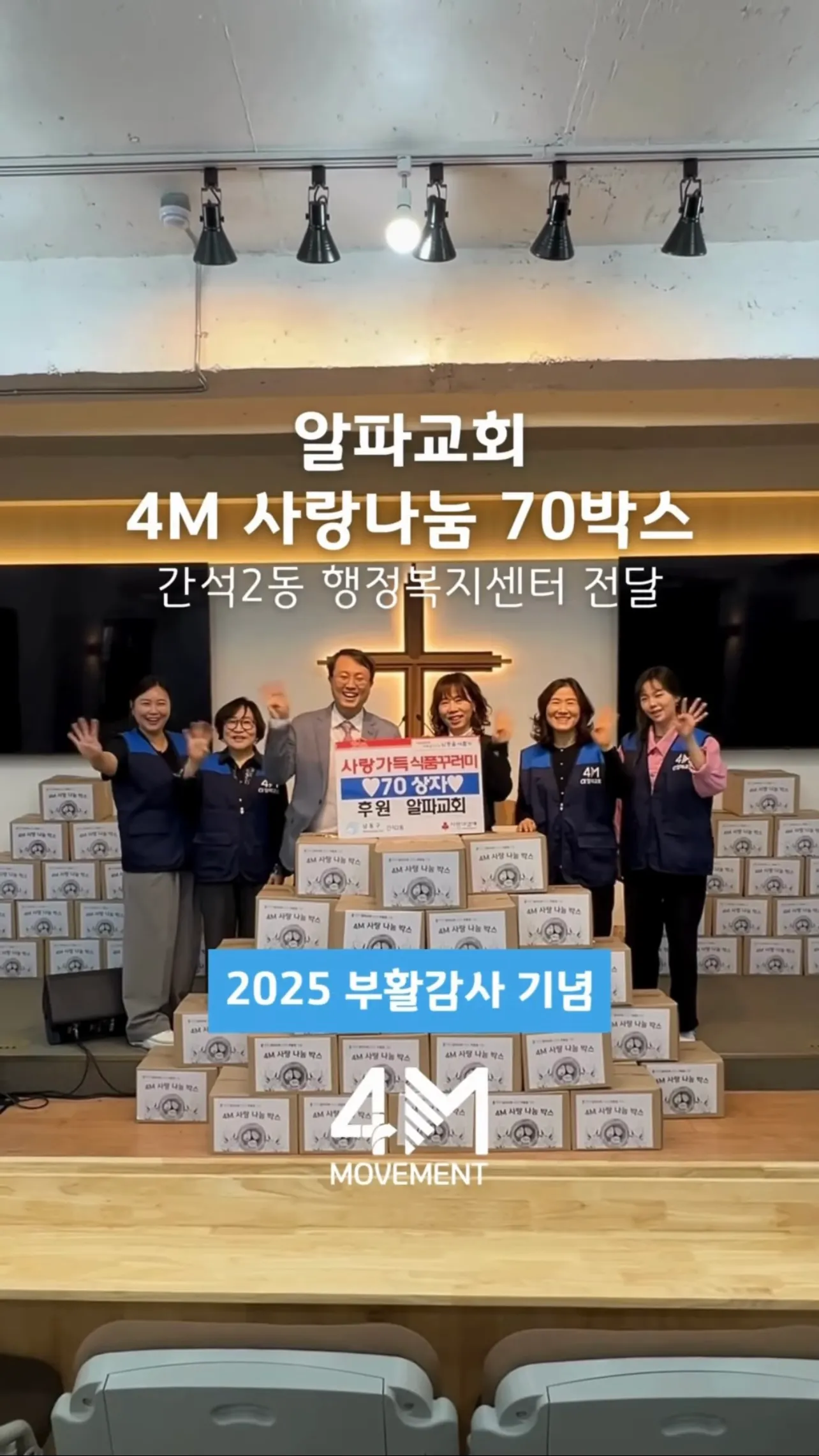 알파교회 부활감사 기념 4M 사랑나눔 70박스 간석2동 행정복지센터 전달