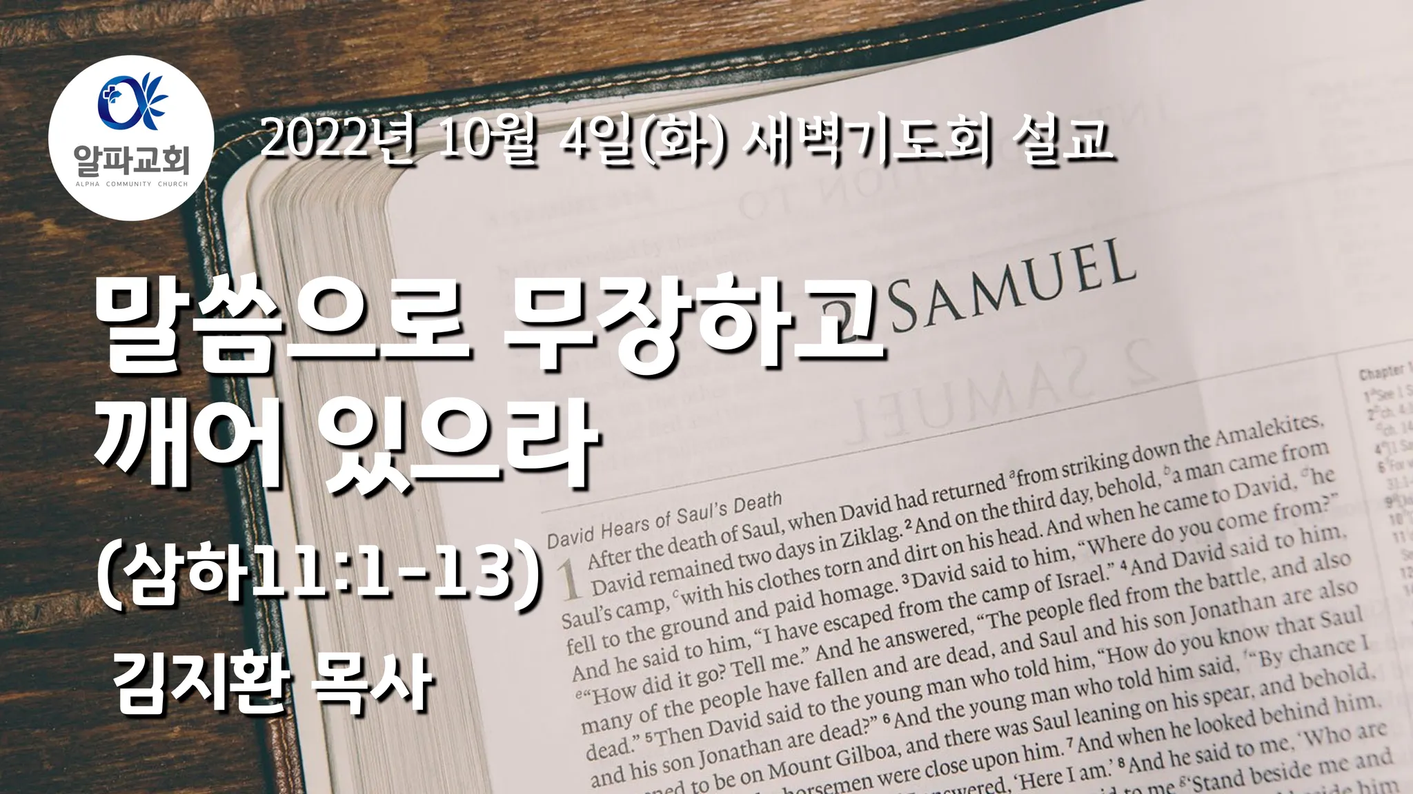 할렐루야 오늘 이 새벽에 알파교회 새벽기도회에 참여하시고 또한 온라인으로 말씀을 들으시는 여러분 모두에게 우리 주님의 평강이 가득 넘치시길 주님의 이름으로 축복합니다.