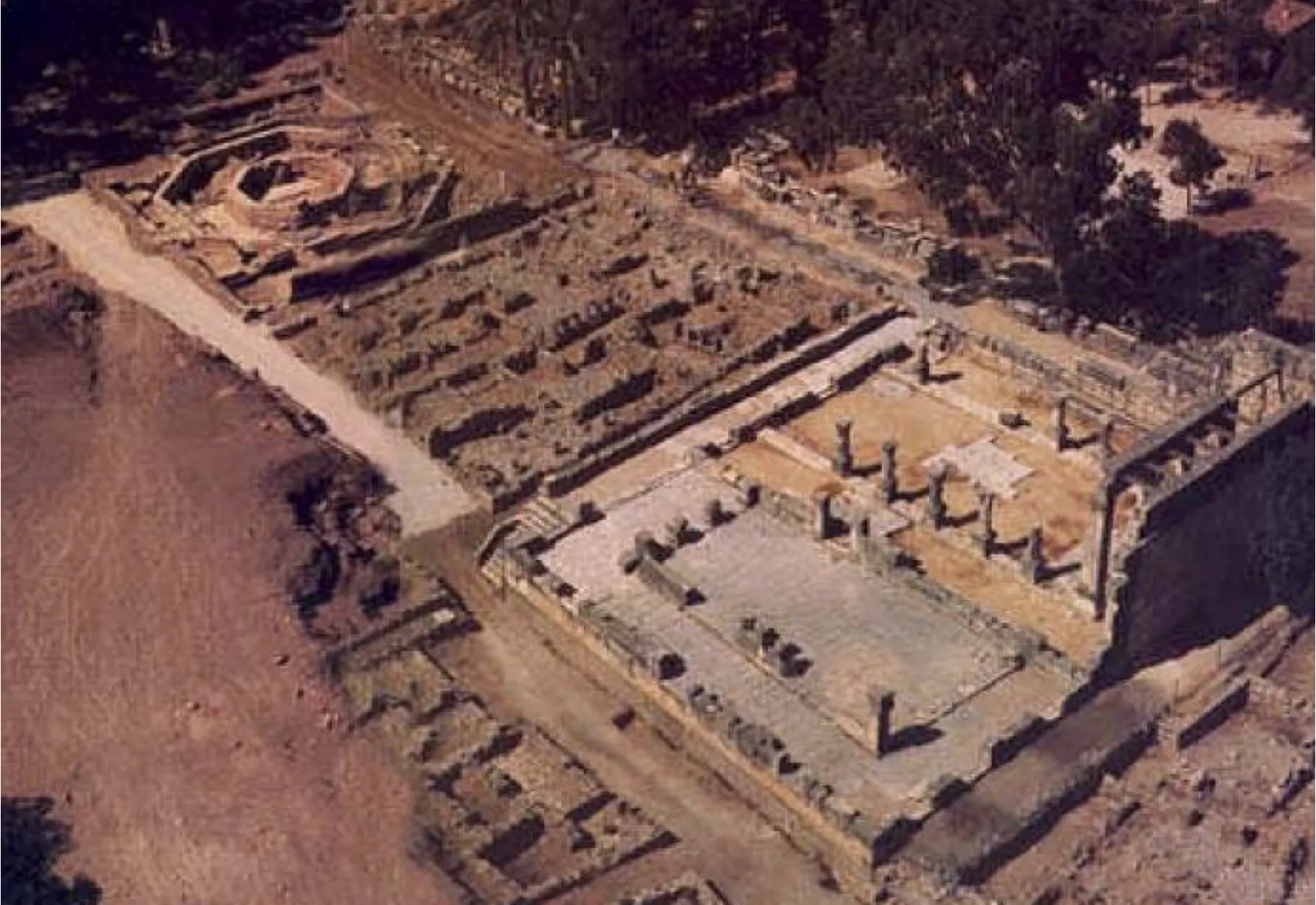 주후 5세기 중엽 그리스도인들은 4세기에 만들어진 담장을 유지하고 4세기 공공장소로 사용된 큰 방을 중심으로 커다란 8각형 교회를 세웠으며 그 교회 중앙 바닥은 불멸을 상징하는 공작새 모자이크로 처리하였습니다.
