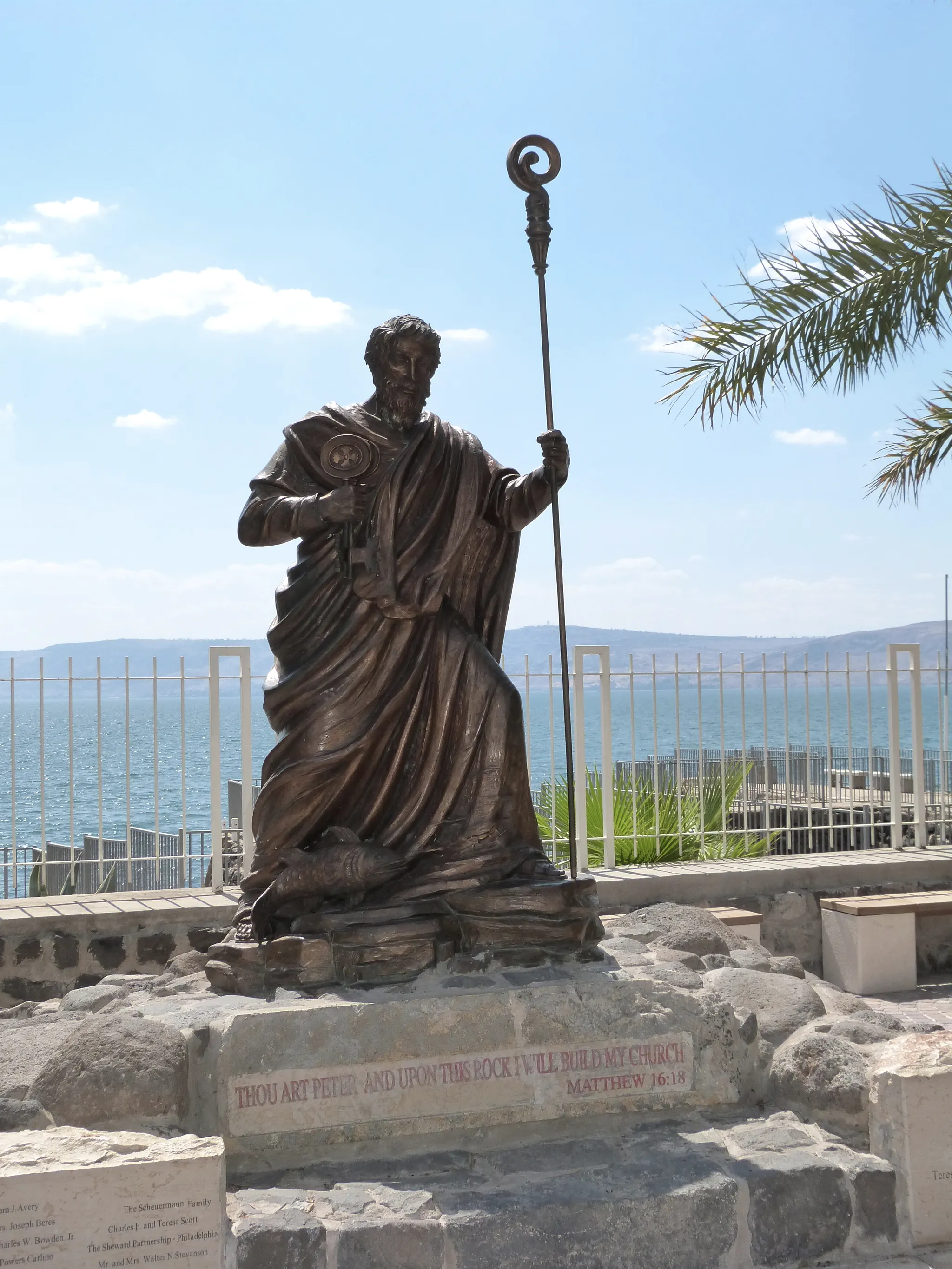 가버나움 안으로 들어서면 육중한 동상 하나가 번득이며 나타나는데, 베드로의 동상입니다. 베드로는 근처 벳세다에 살았는데, 가버나움에도 집이 있었고, 이 곳에 베드로의 생가였던 집터가 보존되어 있습니다. 베드로의 동상 뒤편으로 보이는 검은색 8각형 구조물이 있는데, 그 곳이 바로 베드로의 집터입니다. 예수님께서는 늘 이곳에서 쉬셧다고 전해집니다.