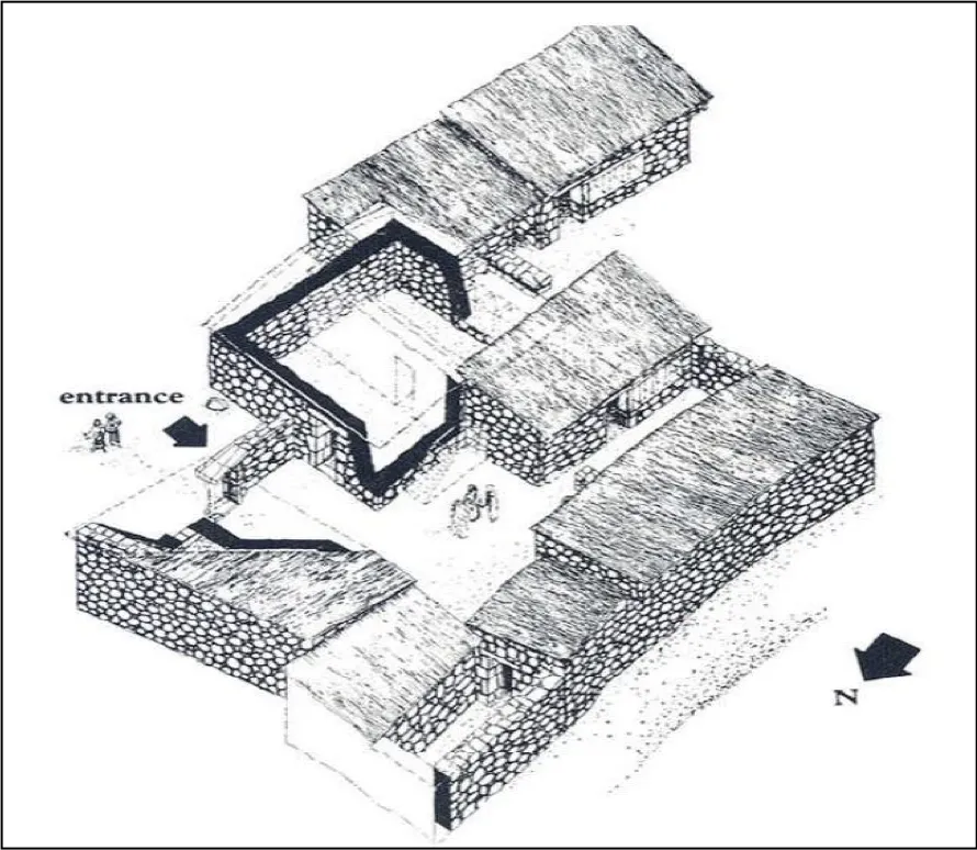 이 곳은 주전 1세기 중반에 처음 지어진 것으로 확인되었는데, 처음 세워진 집은 주변의 집토와 동일한 형태로서, 정사각형 모양의 집이었으며 주전1세기 중반에서 주후 1세기 후반까지 사람들이 살았던 것으로 확인되었습니다.