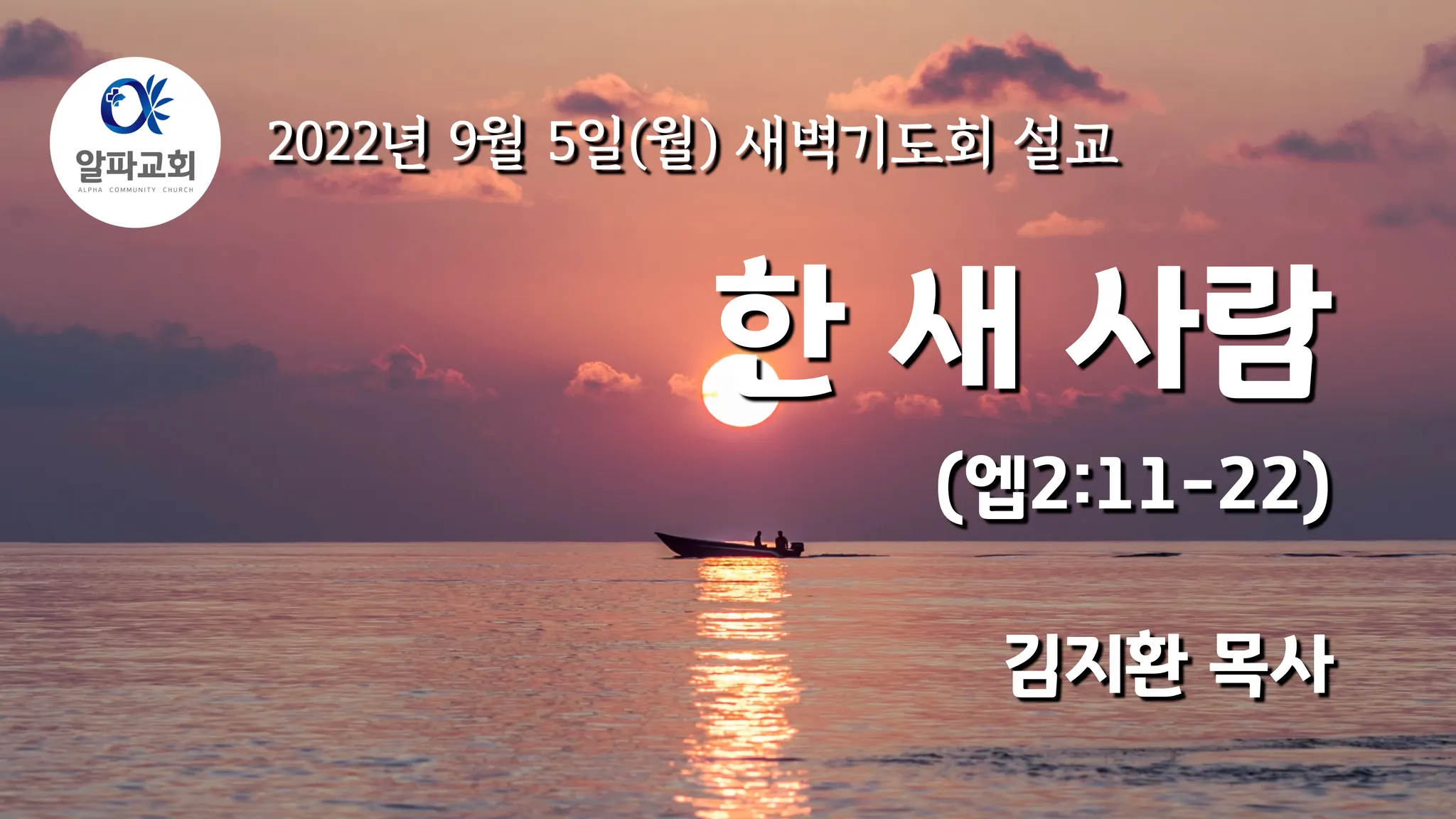 할렐루야 오늘 이 새벽기도회는 알파교회에서 드리지는 첫 번째 새벽기도회입니다. 오늘 이 예배에 참석하시고 또한 영상으로 참여하시는 여러분들 모두에게 우리 주님의 평강이 가득 넘치시길 소망합니다. 뿐만 아니라 앞으로 알파교회가 하나님의 은혜 가운데 건강하게 부흥 성장할 수 있도록 많은 관심과 기도 부탁드립니다.