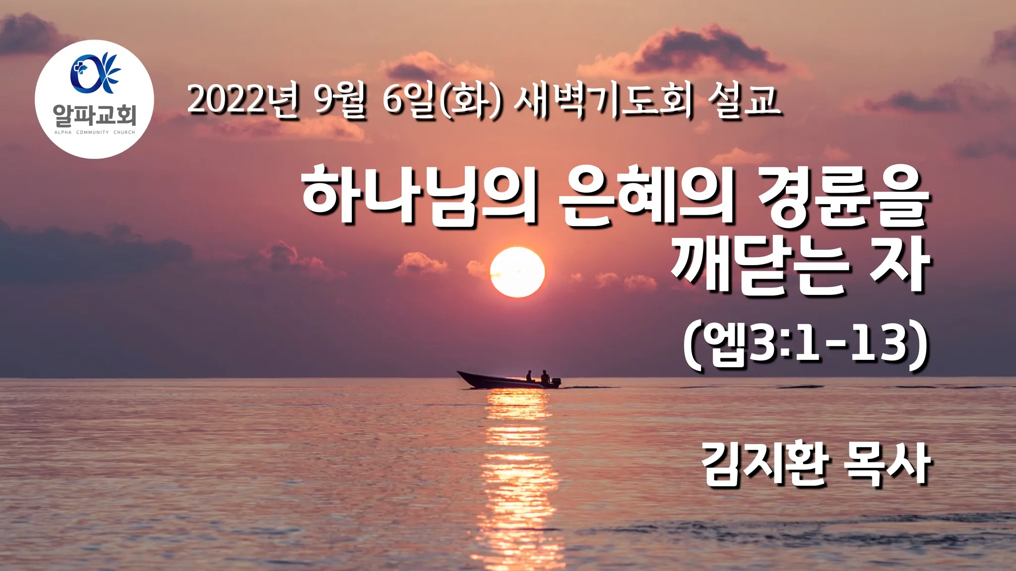 할렐루야 오늘 이 새벽에 알파교회 새벽기도회에 참여하신 여러분 모두에게 우리 주님의 평강이 가득 넘치시길 주님의 이름으로 축복합니다.