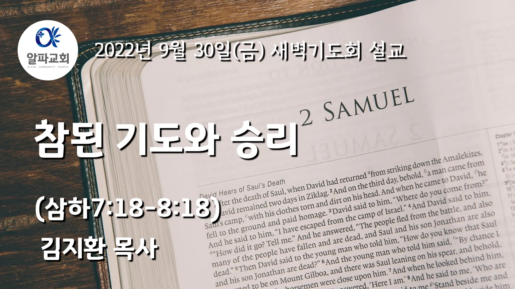 할렐루야 오늘 이 새벽에 알파교회 새벽기도회에 참여하시고 또한 온라인으로 말씀을 들으시는 여러분 모두에게 우리 주님의 평강이 가득 넘치시길 주님의 이름으로 축복합니다.