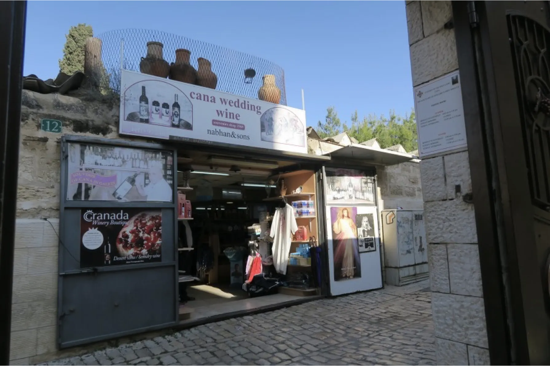 가나와 관련해 갖는 제일 큰 관심은 예수님께서 첫 이적으로 물로 포도주를 만드신 곳이 어딘가입니다. 현재 이곳에는 두 개의 혼인잔치 기념교회가 있습니다. 그리스정교회의 기념교회와 프란치스카 교회입니다. 이 두 교회는 골목길을 두고 붙어 있어 입구부터 포도주 향이 물씬 풍깁니다. 가나 하면 포도주가 떠오르는 것은 물로 포도주를 만드신 기적을 기념해서 입니다. 골목을 따라 가면 이미 포도주를 비롯한 기념품을 파는 가게로 가득 찼습니다.